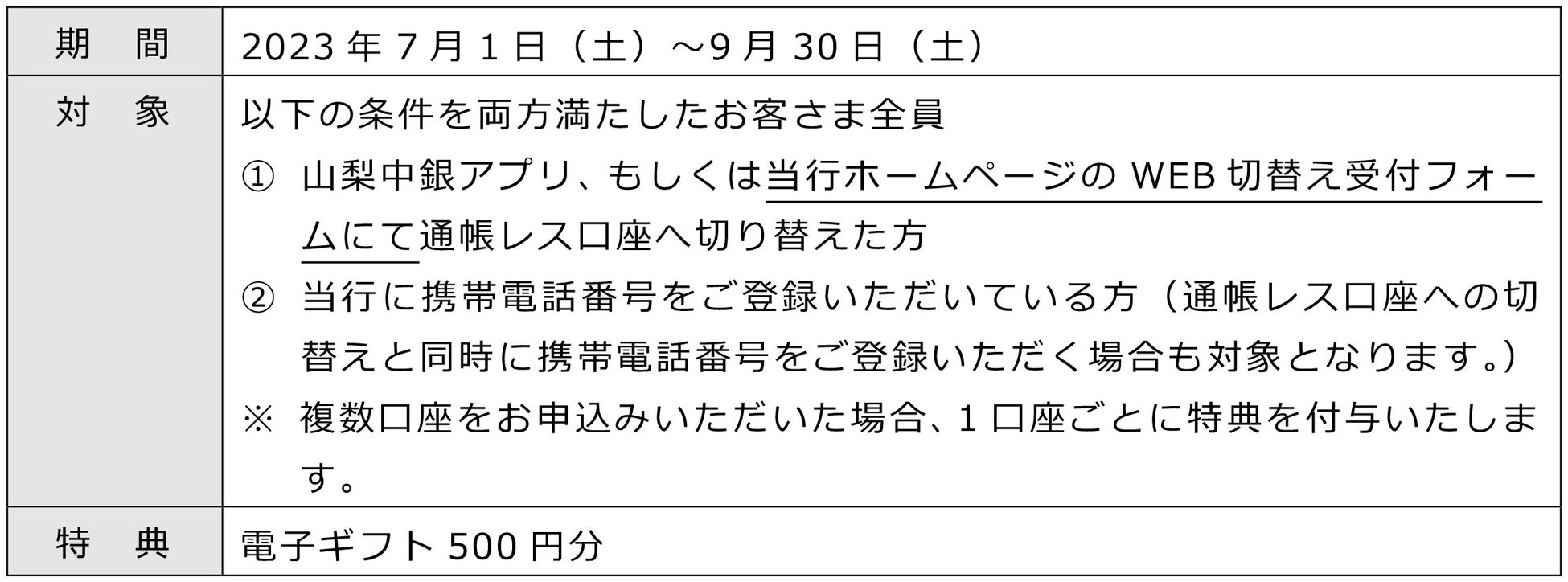 株式会社山梨中央銀行は、7月1日(土)から「通帳レス口座切替えキャンペーン第2弾」を実施します。