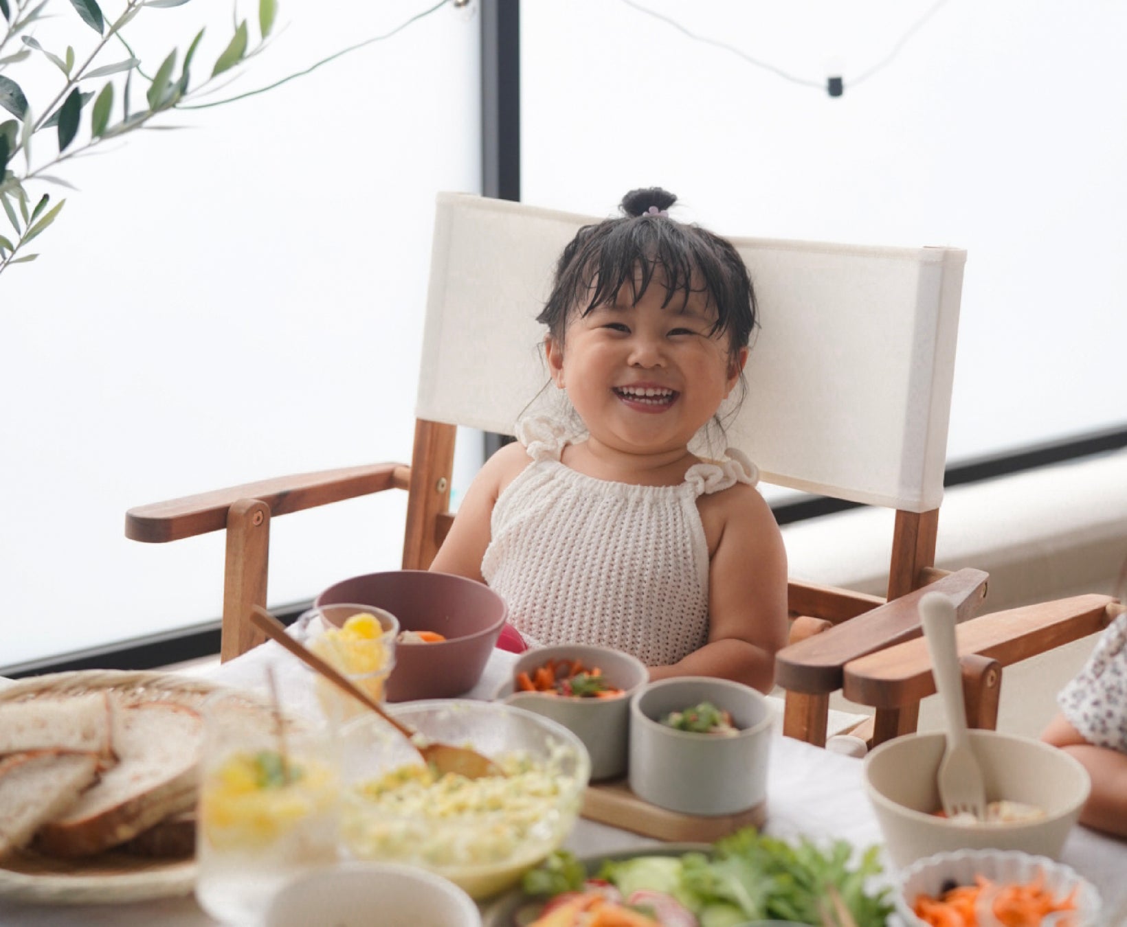 娘様の「テラスで夕飯を食べたい!」が叶った日。キラキラとした笑顔から、テラスピクニックの楽しさが伝わってくるようで、写真を見ている人も自然と笑顔が引き出される素晴らしい作品でした。まるで一緒に座っている気持ちになれる構図や、統一感のある家具・小物でピクニックらしさが演出されている点も素晴らしかったです。