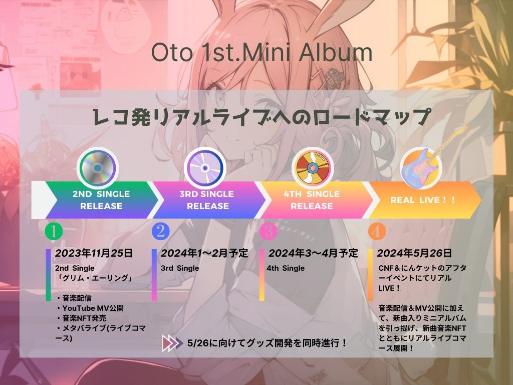 今後3rd、4thとシングル楽曲をリリース、2024年5月にリアルライブイベントの実施、同時にミニアルバムのリリースを予定しています。
