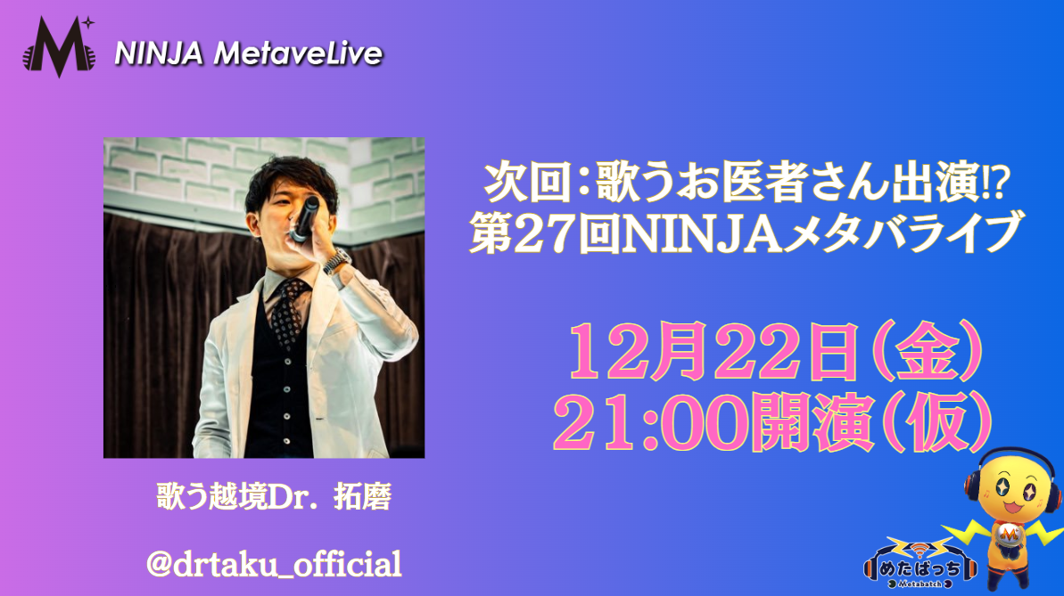◆次回NINJAメタバライブ予定は12月22日(金)