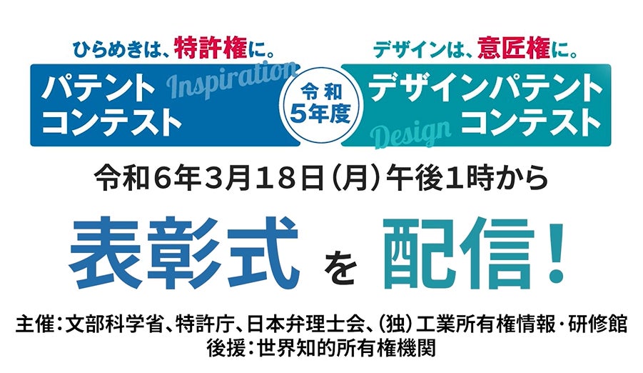 【令和5年度パテントコンテスト/デザインパテントコンテスト】3月18日の表彰式をライブ配信します!