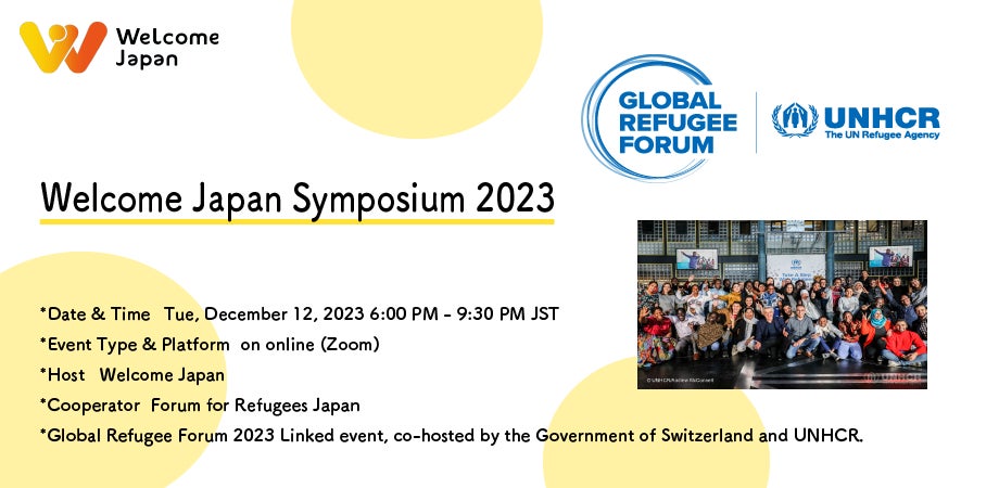 Welcome Japan, a coordination body aiming to realize an inclusive society for both refugees and communities, is set to host the 'Welcome Japan Symposium 2023'. This event is a linked event of the Global Refugee Forum 2023 (GRF), the world's largest international conference on refugee matters, which will be held from December 13, 2023, in Geneva, Switzerland. The Forum is co-hosted by the United Nations High Commissioner for Refugees (UNHCR) and Switzerland, and co-convened by Japan, Colombia, France, Jordan, and Uganda. The Symposium is scheduled for December 12, 2023 (Tuesday), beginning at 18:00 Japan Time (10:00 Geneva Time), and will be conducted online (free participation).