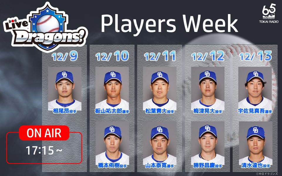 12月9日(月)から13日(金)までは、シーズン終了後のドラゴンズファンの期待に応える「Live Dragons!」と、これからのドラゴンズの“New”に着目した「Dragons NewDays」をお送りします。中日ドラゴンズの井上新監督をはじめ、コーチや選手、ドラフト選手の2025年に向けた展望もたっぷりお届けいたします。