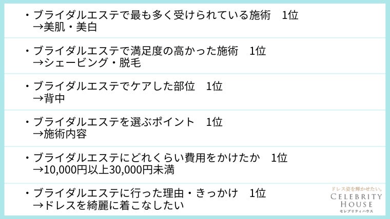 ブライダルエステ専門店「セレブリティハウス」がブライダルエステの満足度について徹底調査