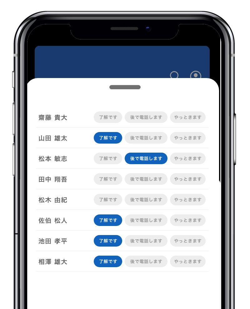 通知を受けた人が、「了解です」「後で電話します」「やっておきます」など、リアクションをすることができ、ボイスメモを見たかどうかを簡単に把握することができます。