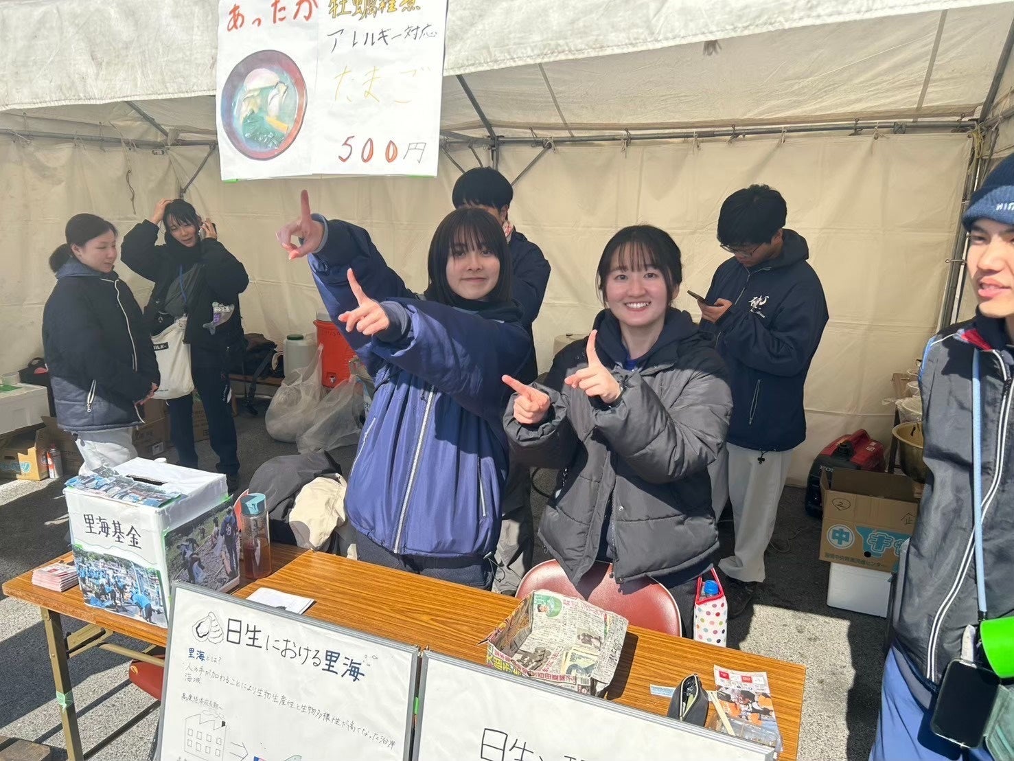 備前市役所職員や漁師の方々とともに、スタッフの一員として、学生のマンパワーを活かしてかき祭を盛り上げるために尽力します。会場では、学生が企画・運営を行うワークショップブースを設置し、これまで当協会が行ってきた活動の歴史や、日生が誇る里海の魅力を発信しています。来場者の里海への関心を高め、地域外における保全活動の認知度向上と協力の獲得を目指します。さらに、日生の海資源である牡蠣を使った飲食ブースでは、地域の食の魅力を伝えるとともに、売上の一部を里海保全の資金として活用することで日生の魅力発信と里海保全に取り組みます。