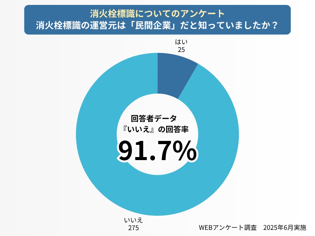 「消火栓標識を見たことがありますか?」という質問に対し、全体の95%が「はい」と回答しました。一方で、消火栓標識の運営元が民間企業であると知っていた人は、わずか8.3%にとどまりました。