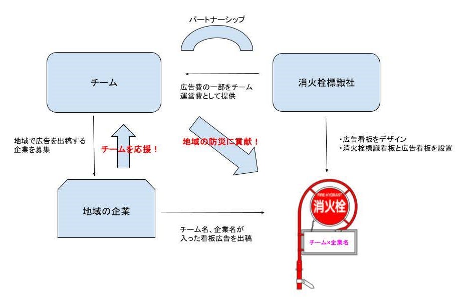 消火栓標識のパートナーシップ制度は、地元企業や団体が地域防災の一環として消火栓標識に広告を掲出する仕組みです。