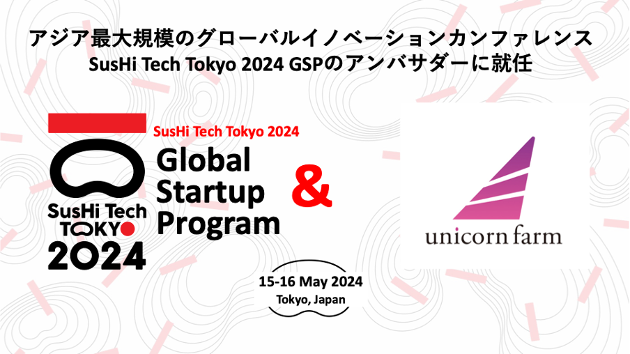 ユニコーンファーム 、アジア最大規模のグローバルイノベーションカンファレンス「SusHi Tech Tokyo 2024 Global Startup Program」のアンバサダーに就任