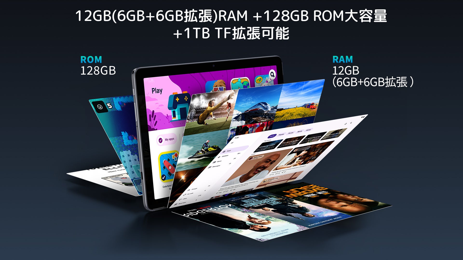 スペック | incell FHD 1920*1200 IPS / 12GB(6GB+6GB拡張) RAM+128GB ROM+1TB TF拡張 /大容量 7200mAh バッテリー 急速充電対応 |