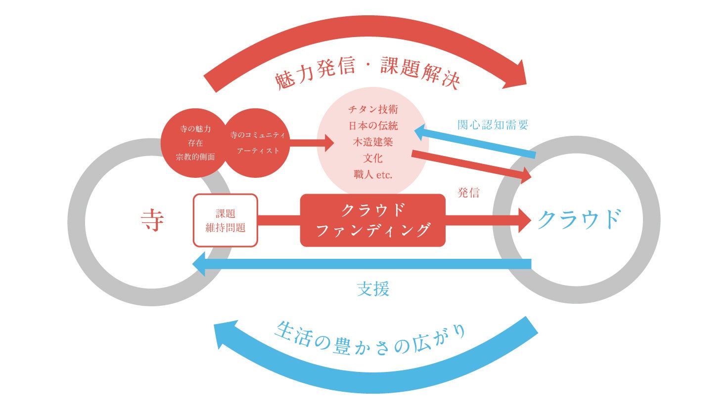 今プロジェクトではクラウドファンディングを通じてお寺と皆様の関係性を構築し持続的な発展を目指しています。これは昔からお寺が果たしてきた役割をお寺が再度担うものにするものです。