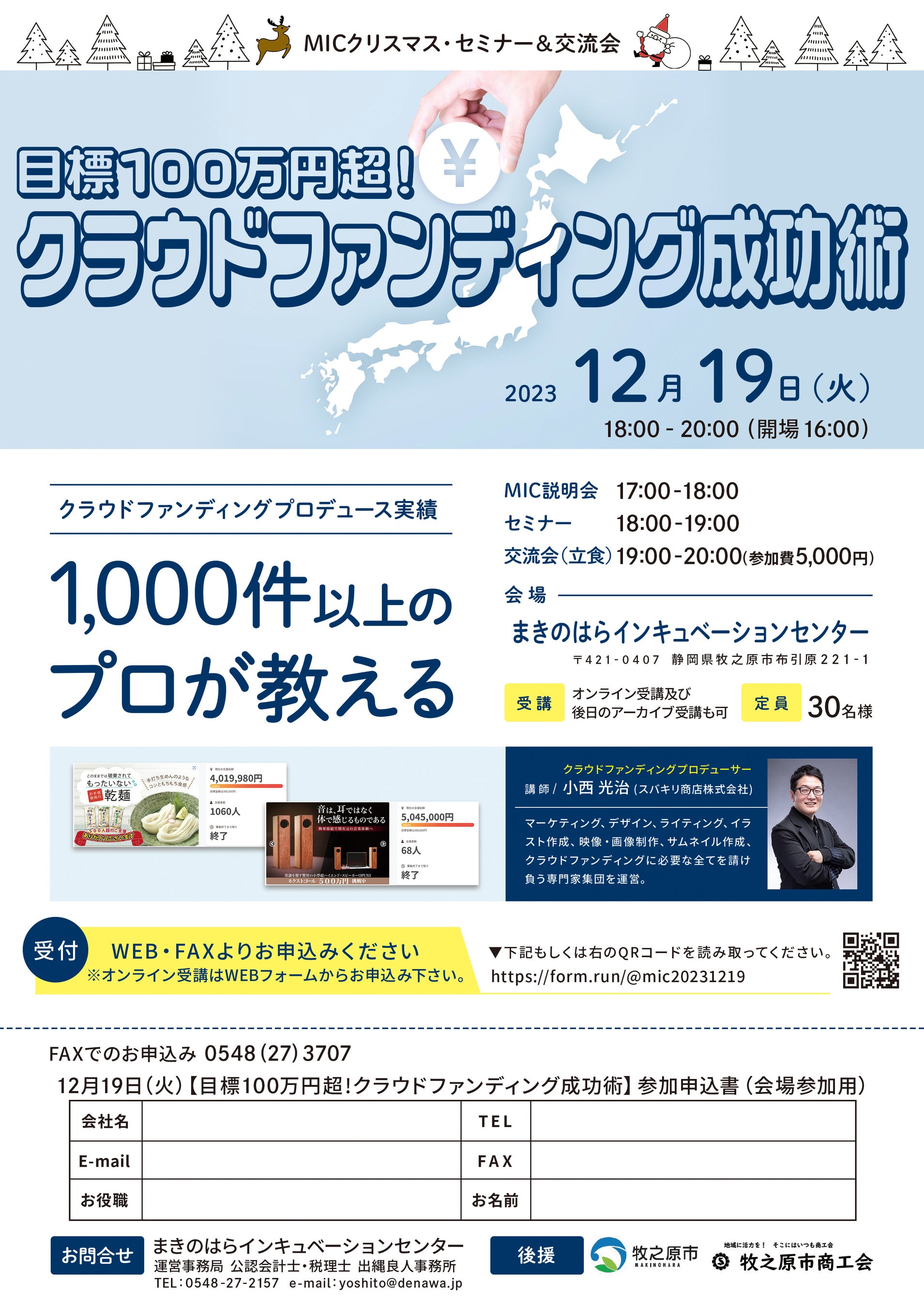 MICクリスマス・セミナー&交流会「目標100万円超!クラウドファンディング成功術」