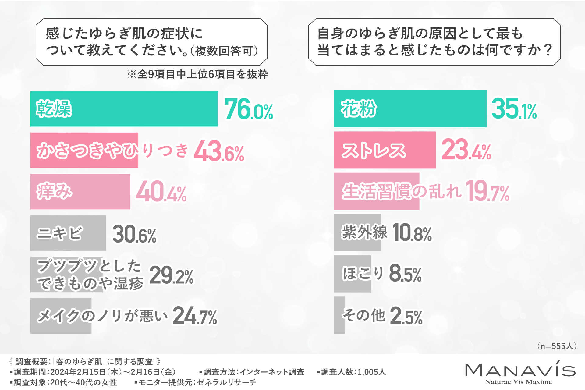 ゆらぎ肌の原因は「花粉」「ストレス」「生活習慣の乱れ」の回答が上位に