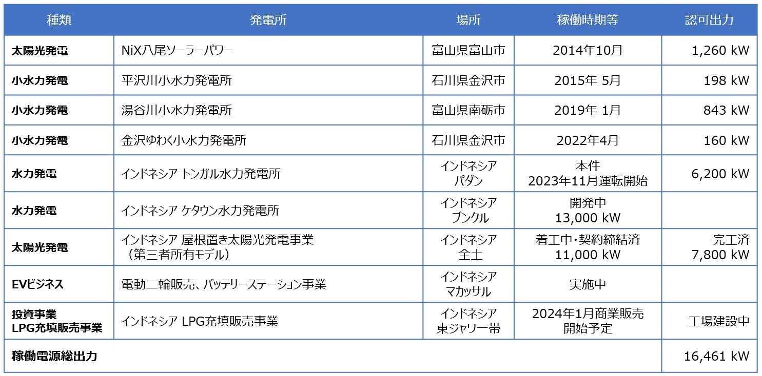 NiXグループは、これまでインドネシアにおいて水力、太陽光発電事業、EVビジネスといったエネルギー事業に加え、投資事業としてLPG充填販売事業を行っております。今後もエネルギー事業の開発を強化することで、インドネシア・日本両国の脱炭素化社会の実現に向け貢献し、サスティナブルな社会に必要とされる企業になるよう取組んでまいります。
