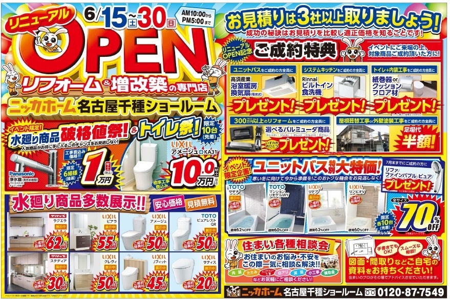 6月15日(土)・16日(日)千種ショールームリニューアル記念イベント開催!6月中はキャンペーンも実施中