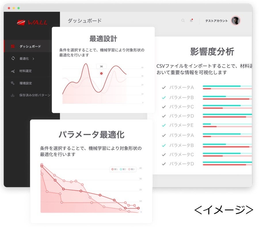 また製造設計において繰り返される膨大なトライアンドエラーは、『WALL』を使用することで重要なデータとなります。このデータから瞬時に最適設計を算出することで、設計工数や試作コストの大幅な削減を可能とします。