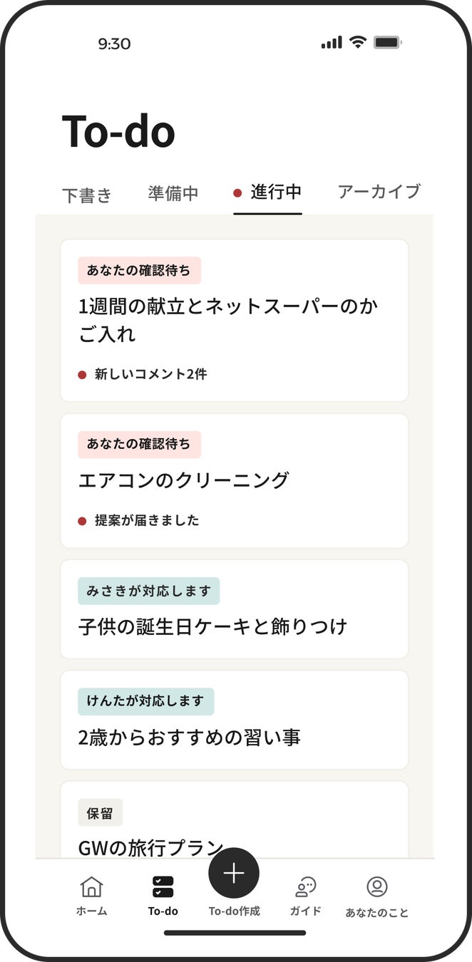 To-doのご依頼をお待ちいただく場合や対応に時間がかかる場合があります。