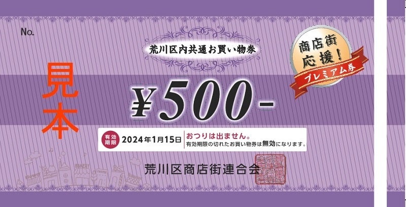 燃料費・食料品価格等の物価高騰の影響を受ける区民や区内の商店街を支えるため、荒川区商店街連合会では「プレミアム付き荒川区内共通お買い物券」を年2回に拡充して発売します。