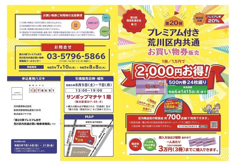 「プレミアム付き荒川区内共通お買い物券」を発売します