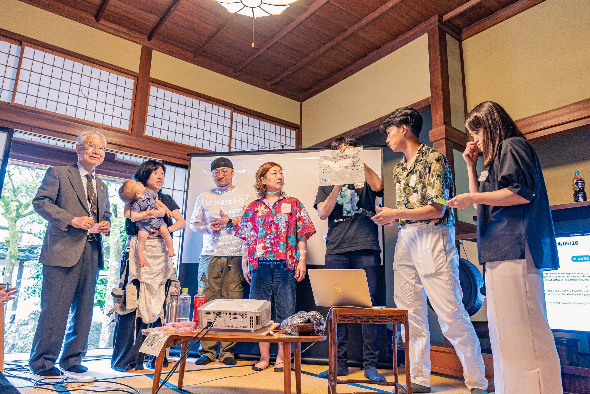・2023年9月: 竹の廃材や海のゴミ、空き家や神社のゴミを活用して会場設営した海辺のビジネスコンテスト