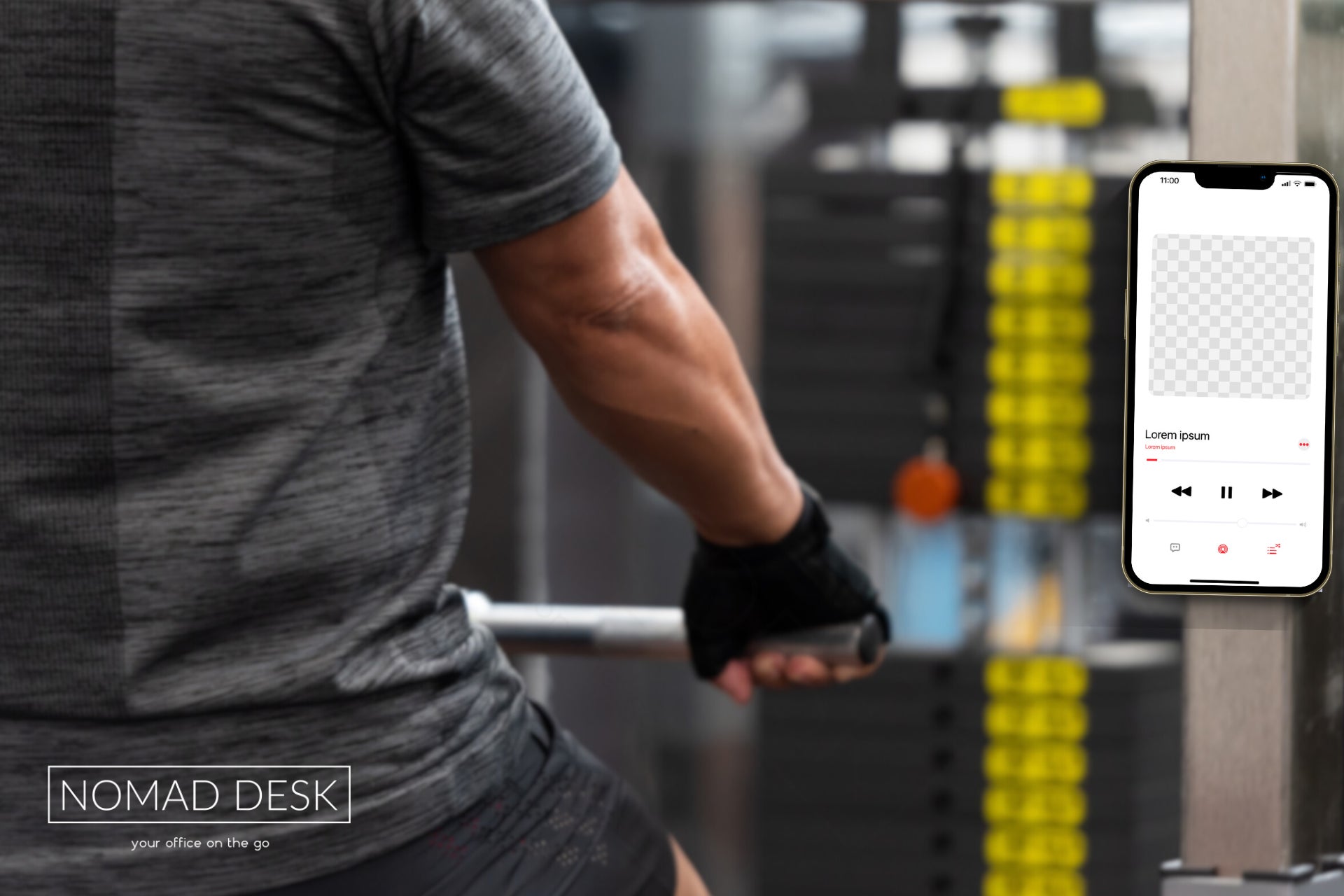 音楽をワイヤレスイヤホンで聴きながらエクササイズ、ウェイトトレーニング。スマホの置き場に困ったとき、マシンや器具にベタッと貼り付け