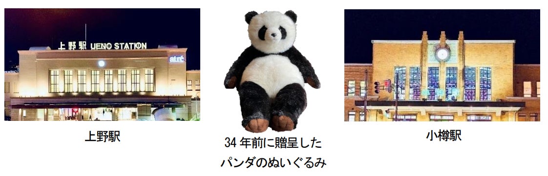 〇姉妹駅締結時に両駅の友好の象徴として上野駅から小樽駅に贈呈したパンダのぬいぐるみが、34 年ぶりに上野駅へ里帰りします。