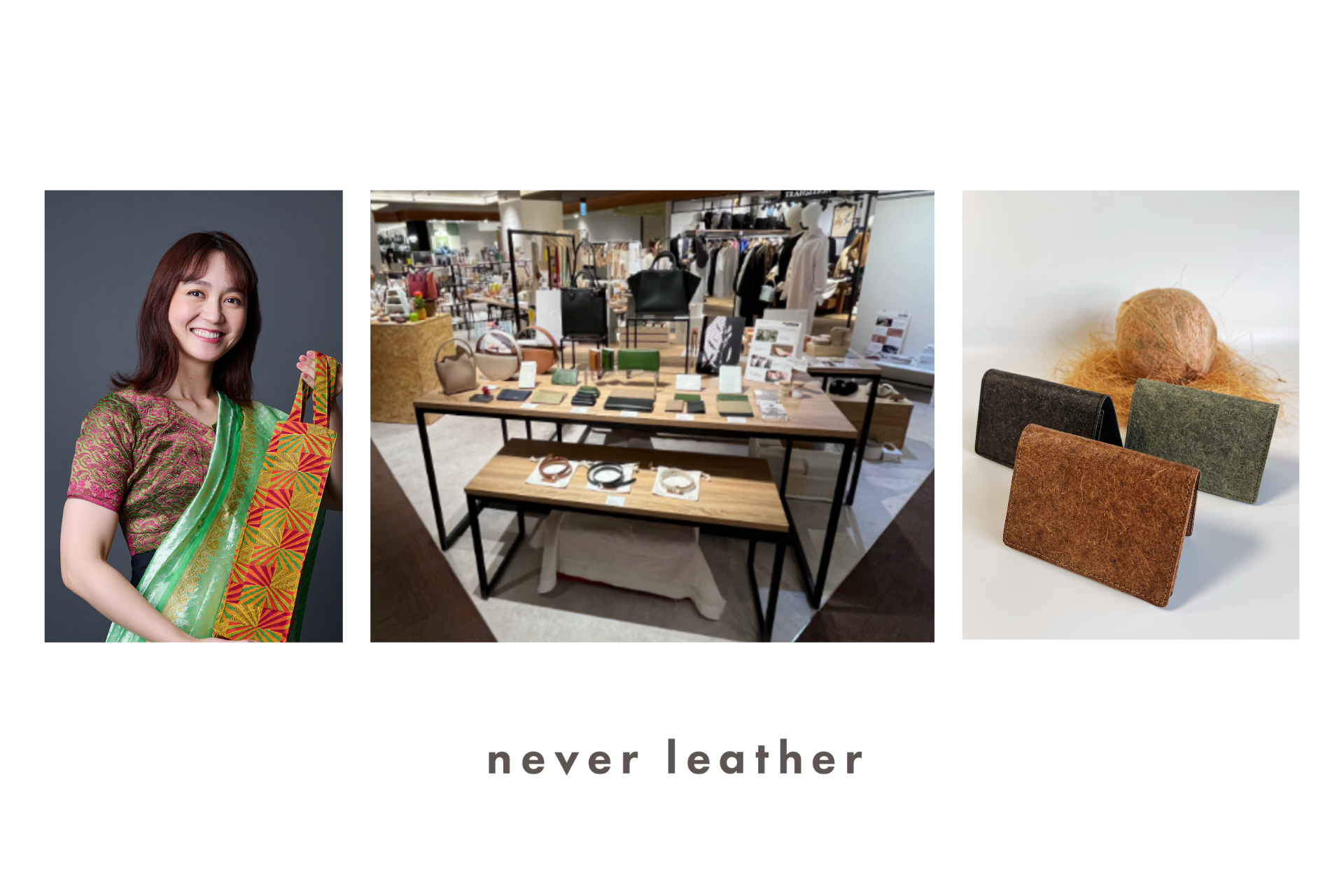他のプラントベースレザーとともに市場の認知度・流通量を大きくし、市場全体を盛り上げたいと考えています。現在オンラインショップでの販売がメインですが、画面上では伝えにくい「独特な質感のおもしろさ」「開発にかける想い」を直接お客様にお伝えする場をつくりたいと思い、「エシカルな暮らし LAB」有楽町マルイ様での展開を決意しました。お客様と直接交流し、ブランドの裏側やココナッツレザーの魅力をお伝えできることを楽しみにしております。ぜひ店頭で、ココナッツレザーを手に取っていただけると嬉しいです。