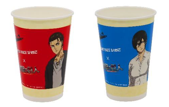場内のレストランでTVアニメ『進撃の巨人』のキャラクターがデザインされた限定スリーブ付きオリジナルドリンクメニューを販売いたします。