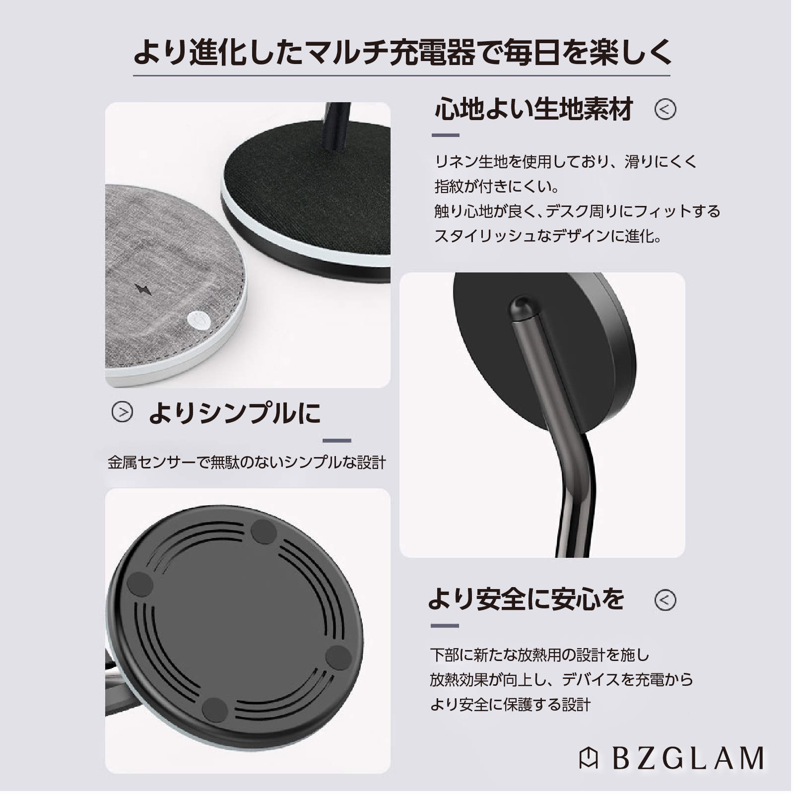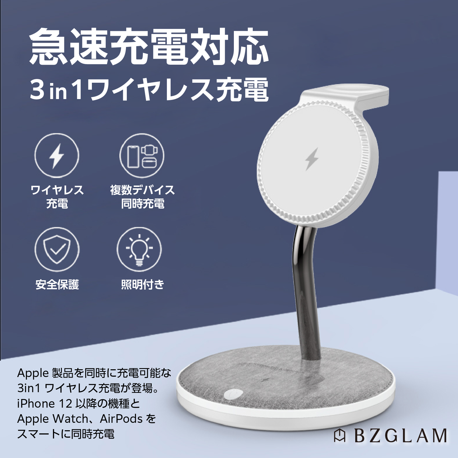 そういった周辺機器の中で、特に「充電機器」が増えることについて煩わしさを感じる方に、多数の支持を頂いている【BZGLAM(ビスグラム)「3in1 MagSafe充電スタンド」】。