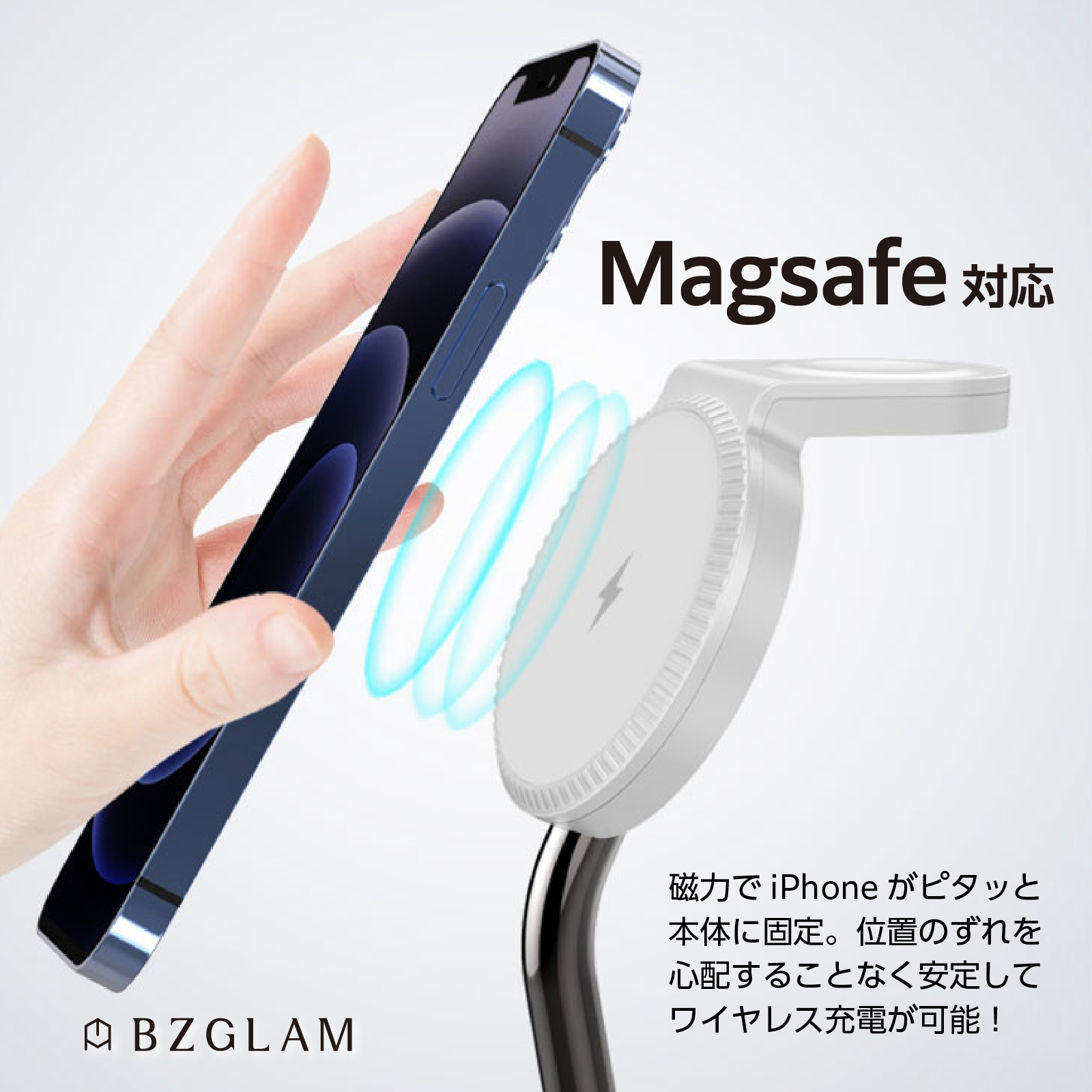 【BZGLAM(ビスグラム)「3in1 MagSafe充電スタンド」】は、各デバイスを本体に直接設置してMagSafe(マグセーフ)充電するため、物理的に各デバイスに充電ケーブルを接続する必要がありません。