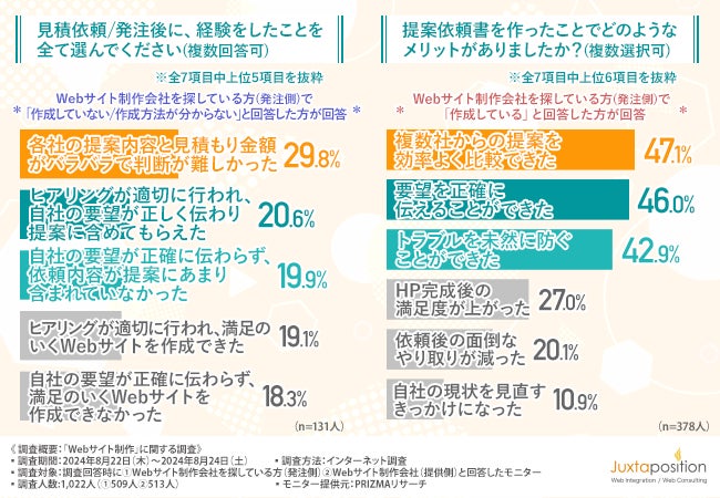 そこで今回、株式会社ジャクスタポジション(https://www.juxtaposition.co.jp/)は、①Webサイト制作会社を探している方(発注側)②Webサイト制作会社(提供側)を対象に、「Webサイト制作」に関する調査を実施しました。