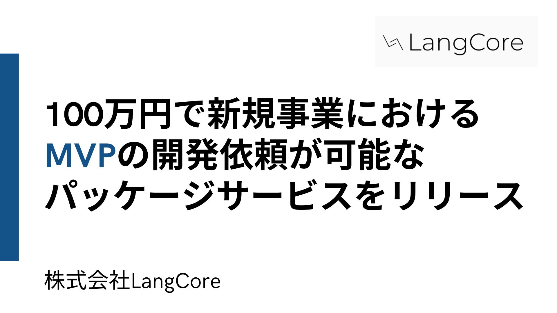 株式会社LangCoreは、2023年11月より生成AIを用いた新規事業におけるMVP開発をミニマムの費用で価値検証できる開発パッケージを提供します。