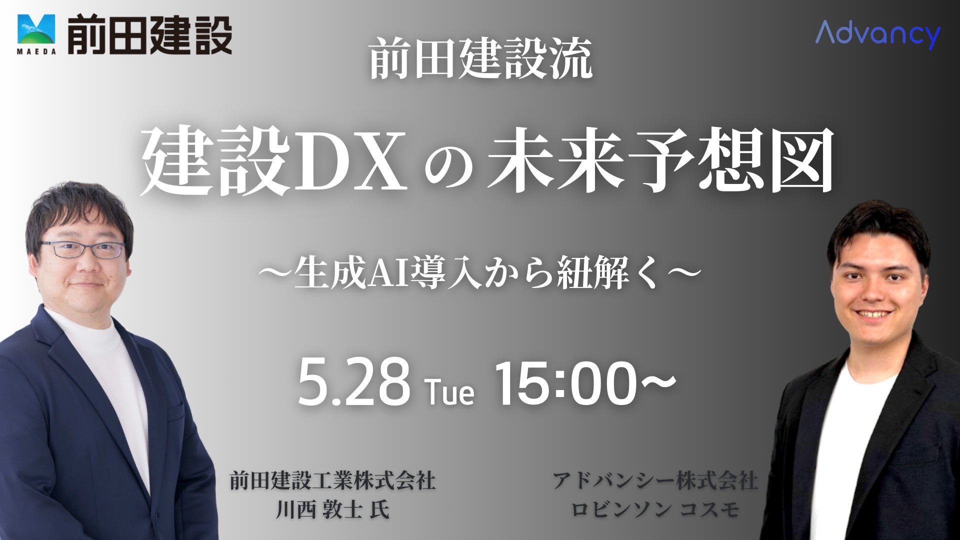 また両社は協業体制の一環として、5月28日(火)に特設ウェビナー「前田建設流!生成AI導入から紐解く建設DXの未来予想図」を開催いたします。
