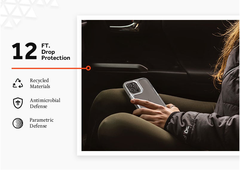 2レイヤープロテクションと幾何学模様の構造で衝撃を分散させ、