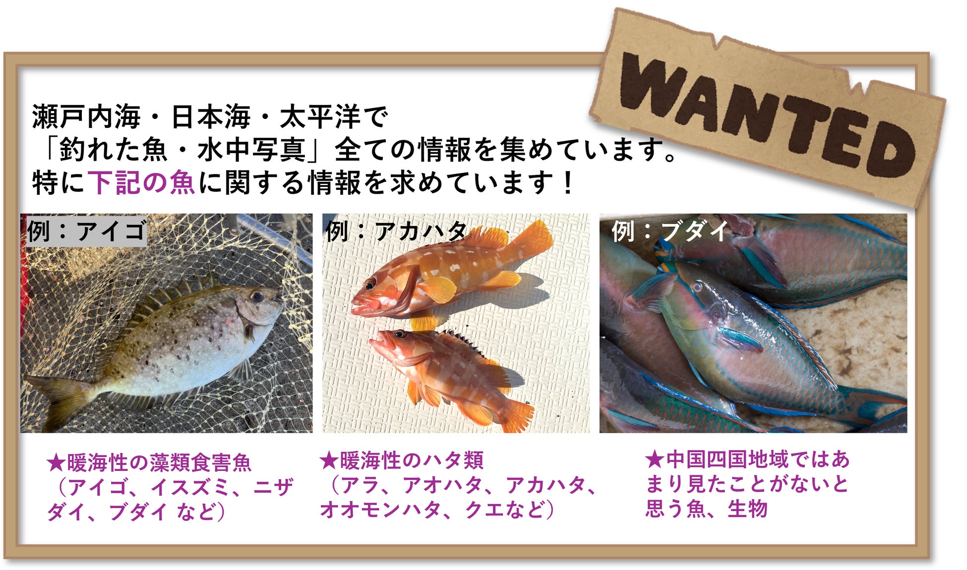【中国四国地方】「みんなでシェアしよう」気候変動の影響かな?と思う「魚の情報」の収集にご協力ください(2025年1月末まで)