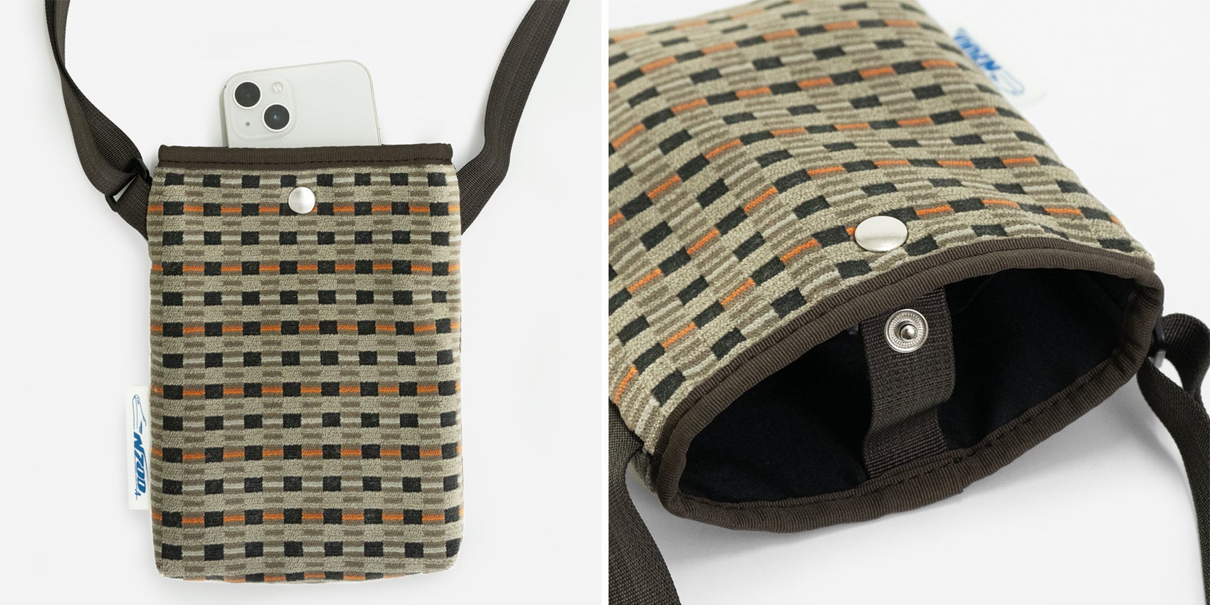 ■ スマートフォンをゆとりを持って収納でき、簡単に出し入れ可能なモケットスマホショルダー