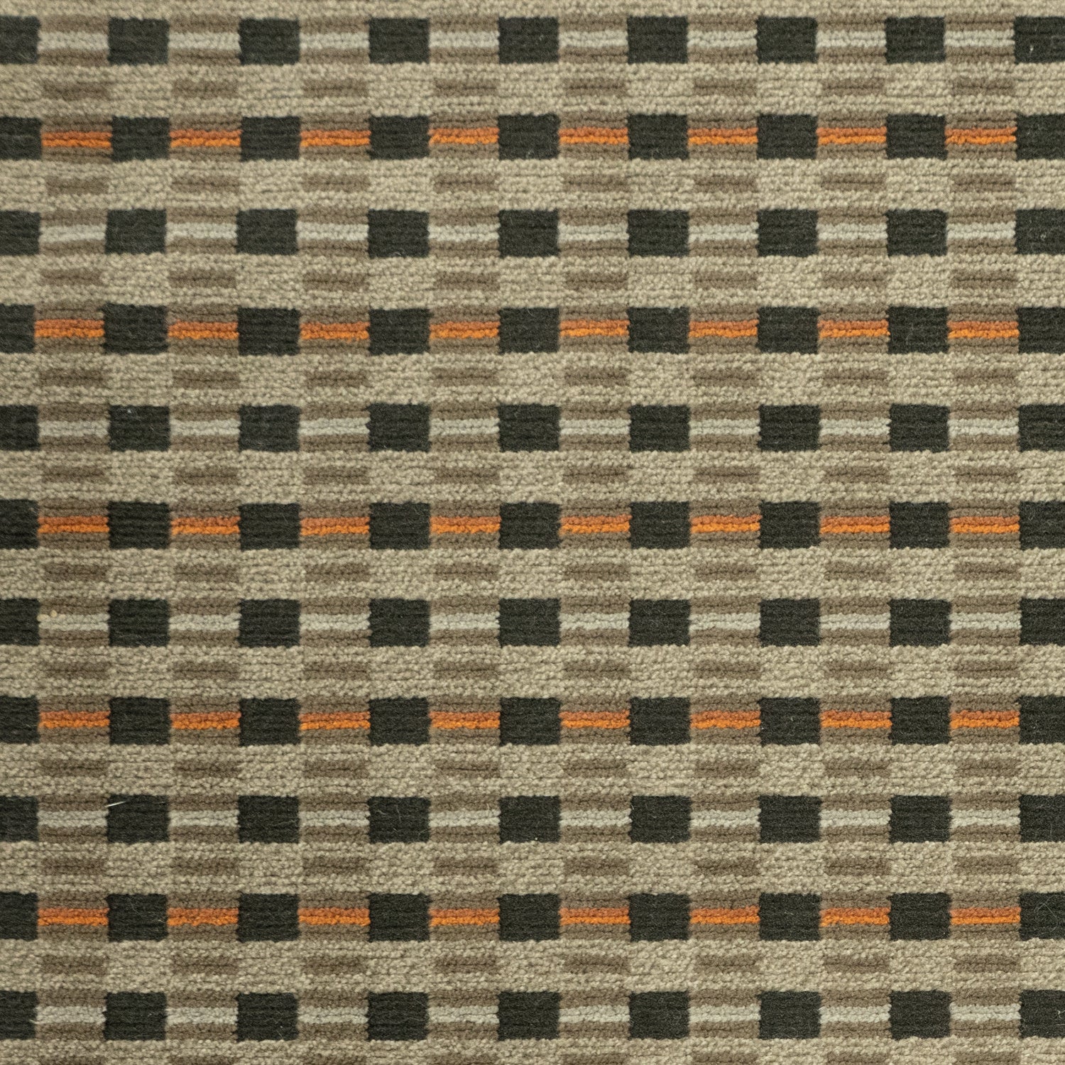 高級感のあるブラウンを基調としたグリーン車座席モケット生地は、ダークブラウンのスクエアパターン部分の毛足が短くカットされていることで立体感のある触り心地になっています。