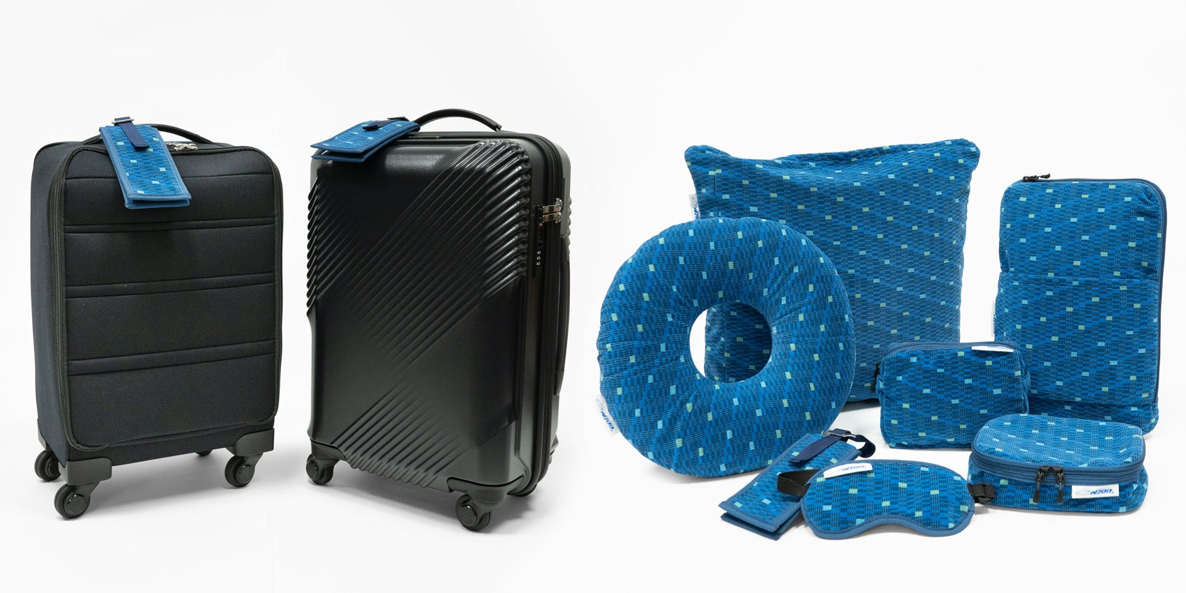 ・普通車座席生地を使用した旅小物8種類(アイマスク・ラゲージタグ・ざぶとん・ドーナツクッション・クッションカバー・ポーチ・ガジェットポーチ・ドキュメントケース)