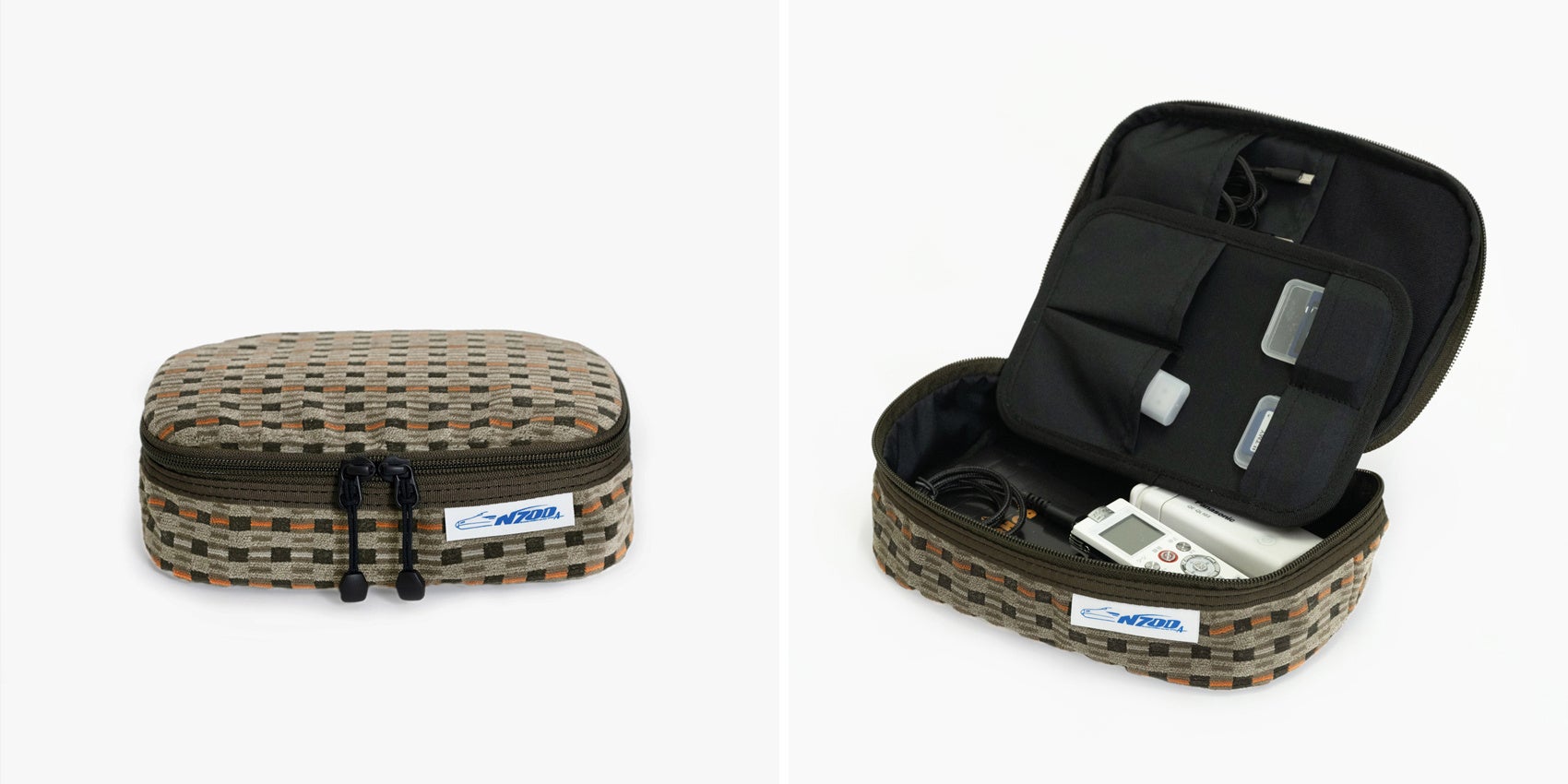 モバイルバッテリーやICレコーダー、SDカードなど、中仕切りボード付きで仕切りポケットがたくさんあるため収納力抜群。クッション性のあるモケット生地が衝撃を和らげます。