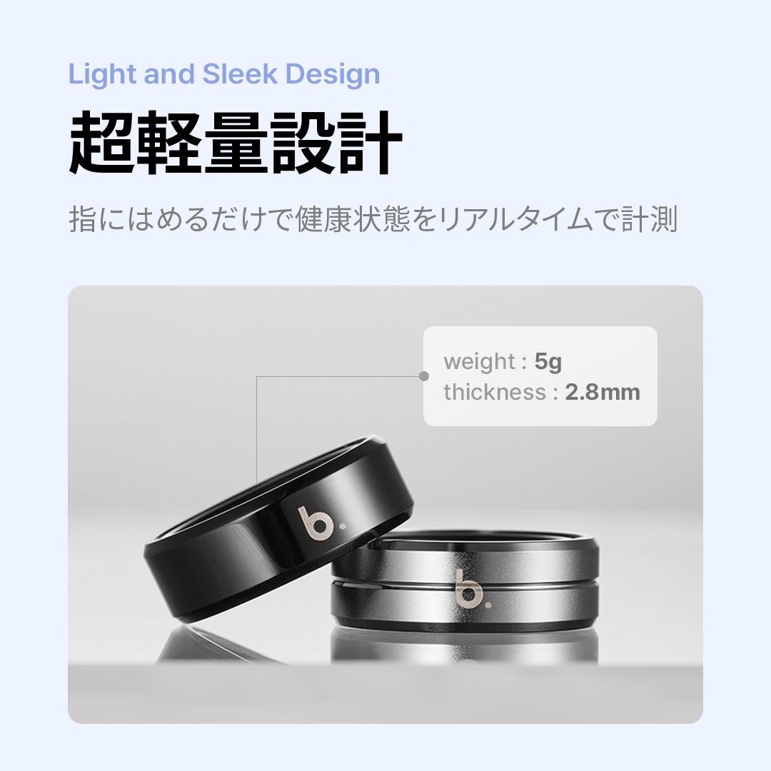「b.ring」は、ユーザーの睡眠パターン、心拍数、活動量、ストレスなど、多岐にわたる健康指標を総合的にモニタリングし、健康的な生活をサポートする製品です。これらのデータは専用アプリを通じてリアルタイムで確認でき、ユーザーはいつでもどこでも自分の健康状態を簡単に追跡し管理することが可能です。
