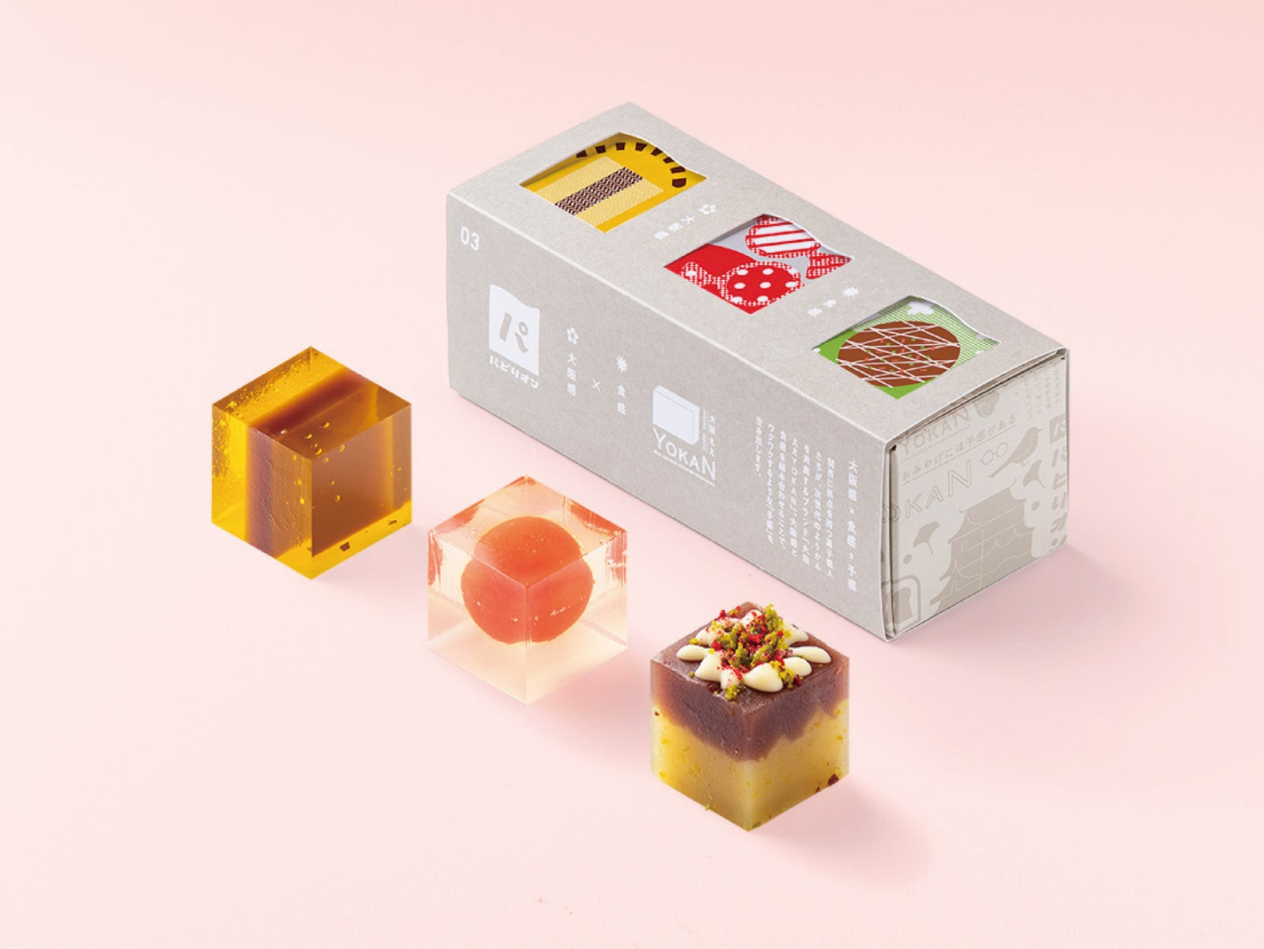 “大阪らしさ”を表現したキューブ型羊羹「パビリオン」を、11/29〜12/5「大丸梅田店」にて期間限定で販売します。