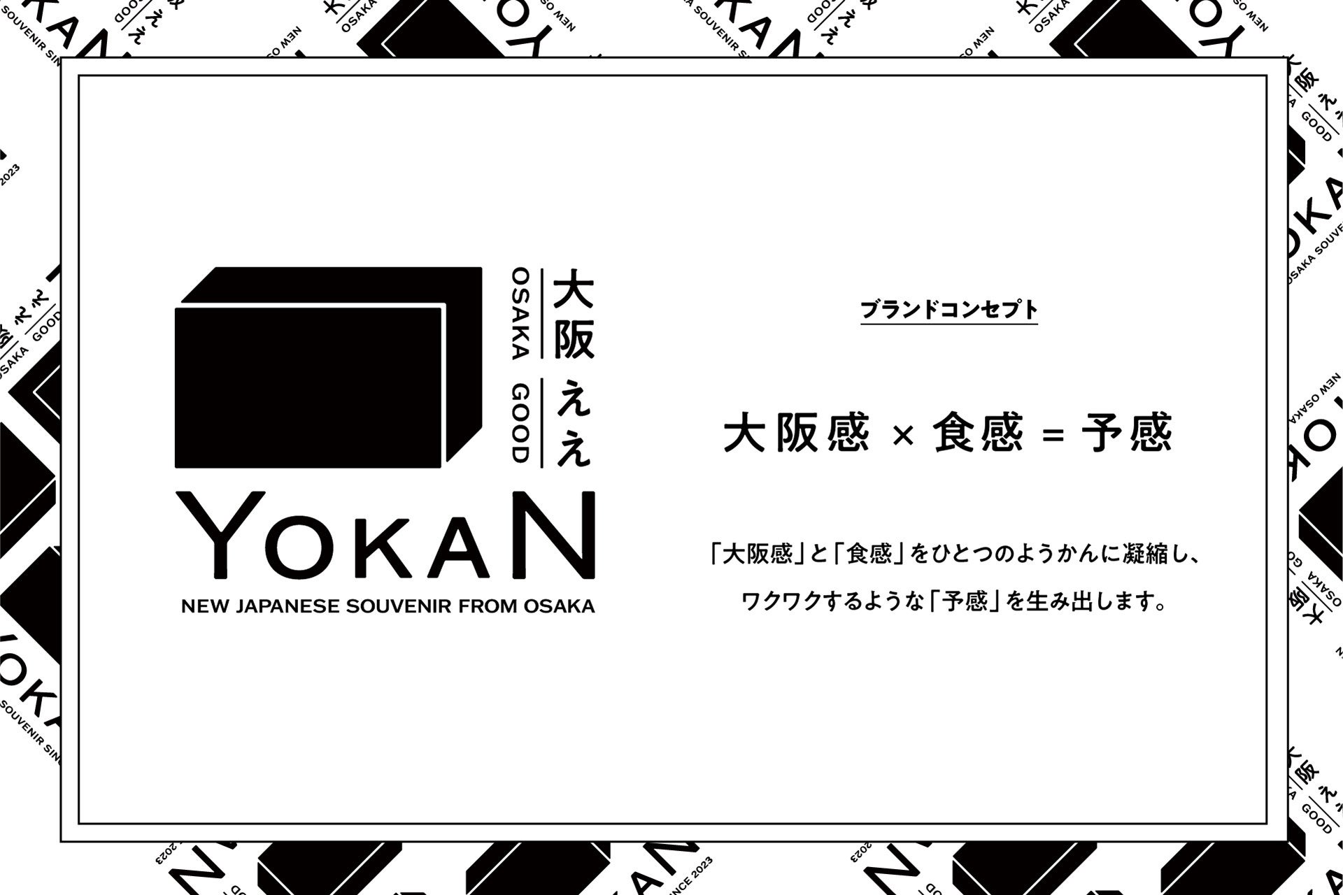 和菓子想い。髙山堂とdemo!expoが立ち上げた「あたらしい大阪みやげ計画」から生まれた、次世代のようかんを創出する新ブランド「大阪ええYOKAN」。「YOKAN」は「予感」とも読むことができ、「渡す相手を想うお土産としてのええ予感」、「口に入れるまでのお菓子としてのええ予感」、そして「2025年の大阪に対する未来へのええ予感」のすべてを満たすようかんを目指します。