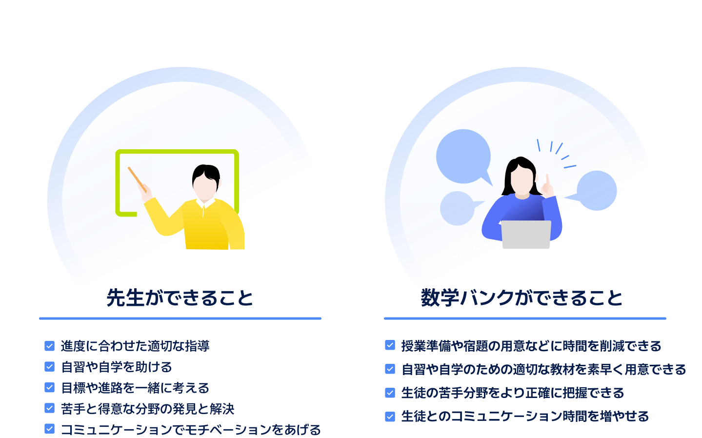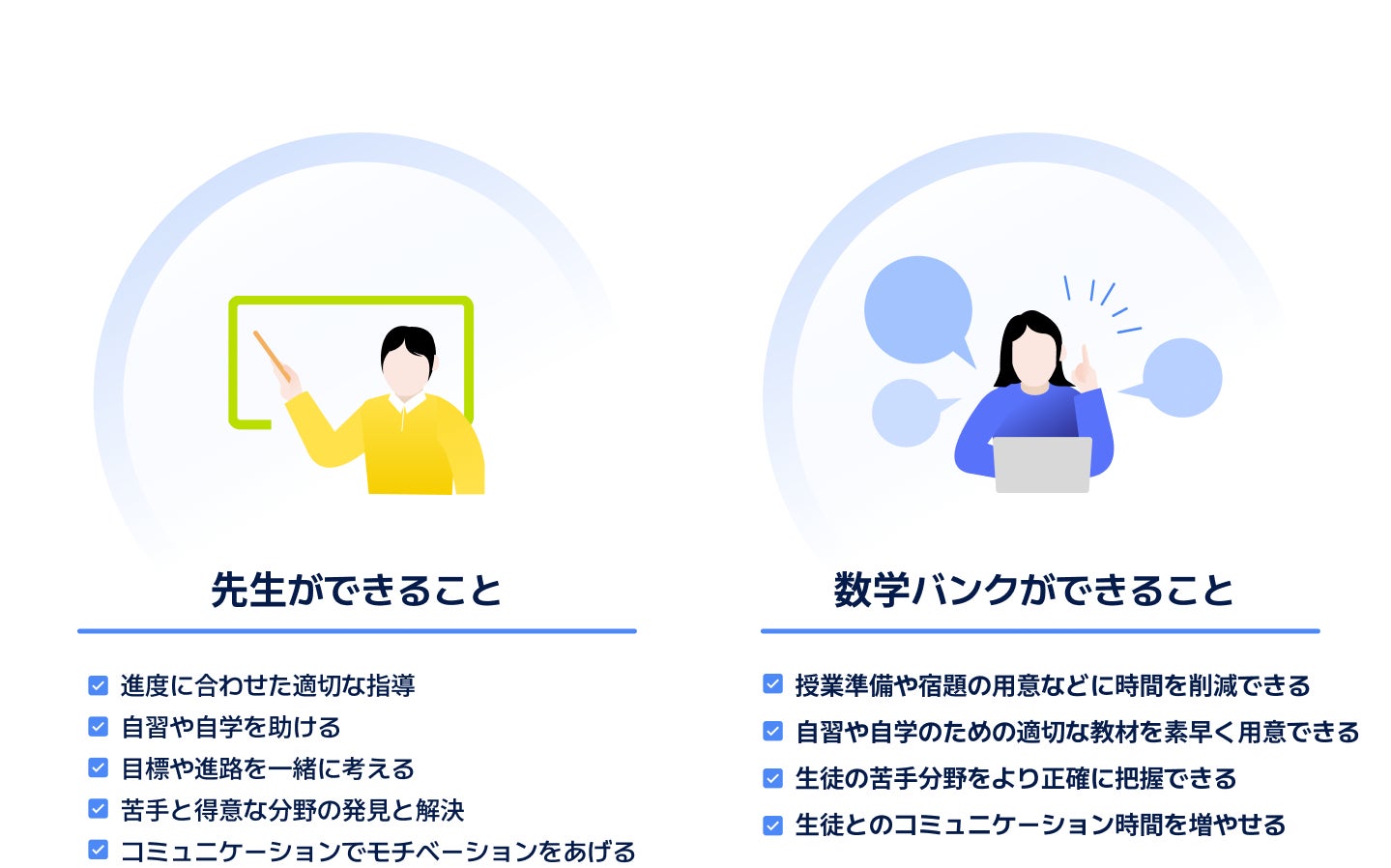数学バンクはあくまで先生のサポートを目的としていて、先生ファーストを基本の考えとしています。