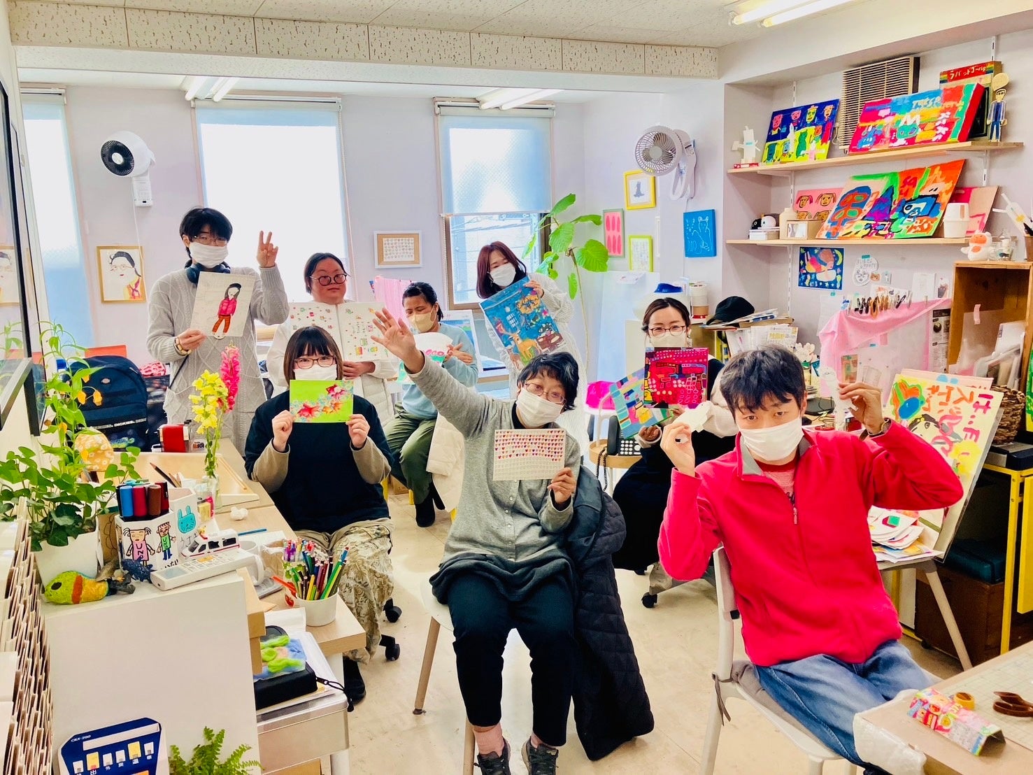 所属の80名、それぞれの社会との架け橋を築きたいと願っています。映画を作りたい、金魚を描く月(ルナ)ちゃんの作品を海外のコレクターにアピールしたい、パッケージデザインで大人気の頼(より)ちゃんの作品をアパレルでデビューさせたい、嬉々の傘シリーズを作りたい、電車・飛行機のラッピングで嬉々のアートを日本全国に走らせたい・・・!!