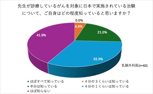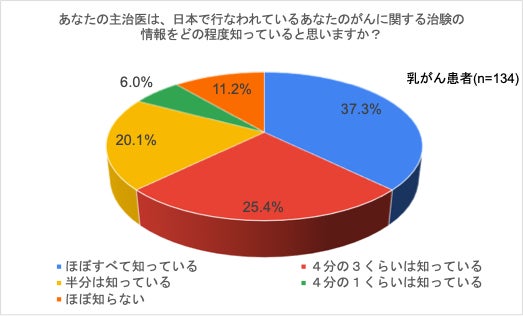患者さんの6割が主治医は国内の治験情報をよく知っていると期待、一方で治験情報を「よく知っている」と回答した医師は1割未満