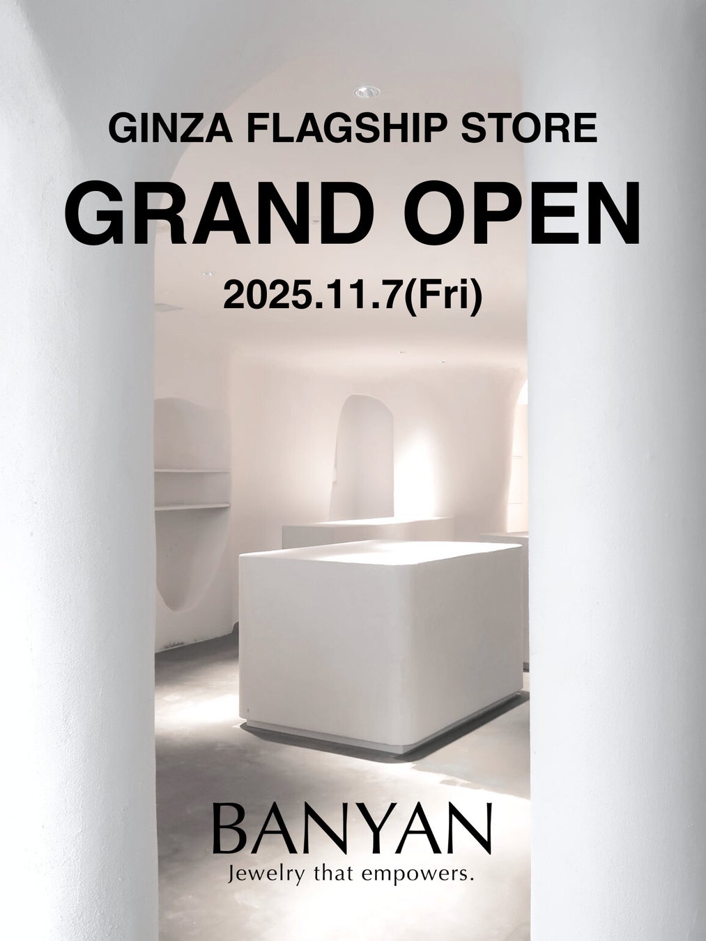株式会社BANYAN(代表取締役:國田かおり/本社:東京都港区)が運営するジュエリーブランド「BANYAN(バンヤン)」は、2025年11月7日(金)に銀座に新店舗をオープンいたします。