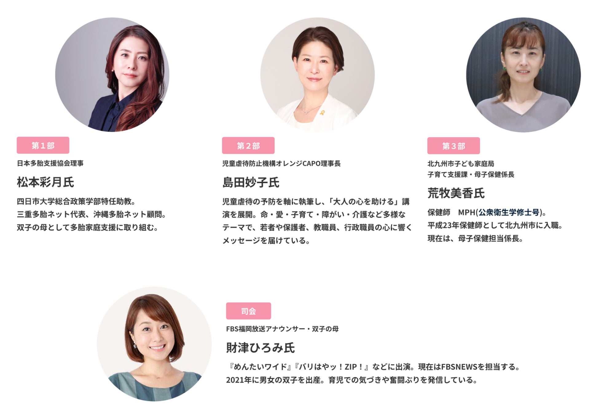 こども家庭庁、福岡県、福岡市、北九州市の後援を得て実現する本シンポジウムでは、虐待死率が単胎育児の2.5倍から4倍に上る多胎育児の現状について、日本多胎支援協会理事や児童虐待防止機構理事長など専門家が登壇し、多胎育児の現状や虐待の課題、必要な支援体制について700名規模の参加者とともに議論します。
