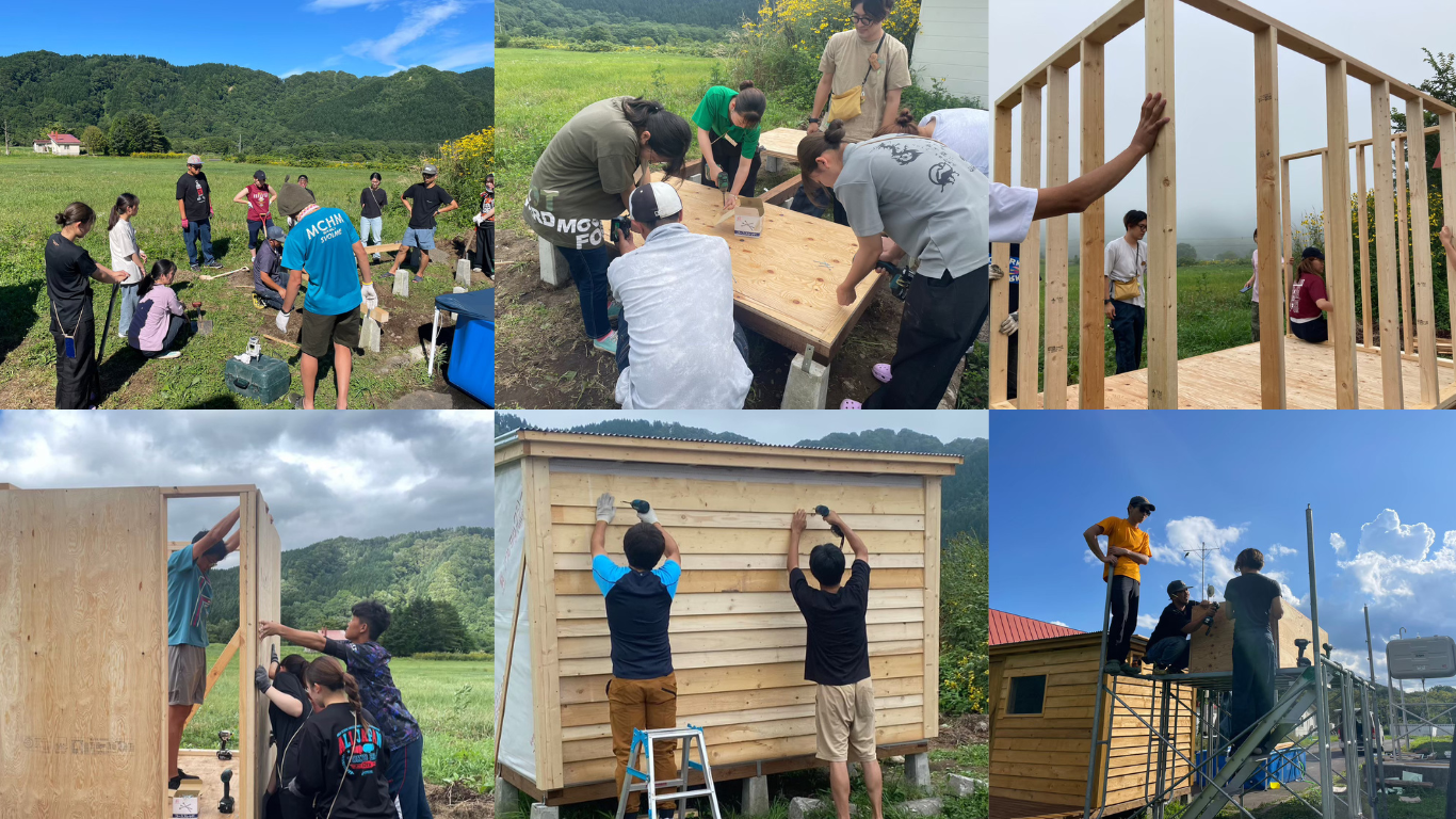 「もっと気軽に八雲町に関わってくれる方を増やしたい」「八雲町内外の人が交わる場所を生み出したい」という思いの元、八雲町の大工さん、隣町の木工職人とプロジェクトを立ち上げました。2023年8月~10月までの2か月間で全国から約50名のボランティアメンバーに参加いただき、DIYで製作しました。