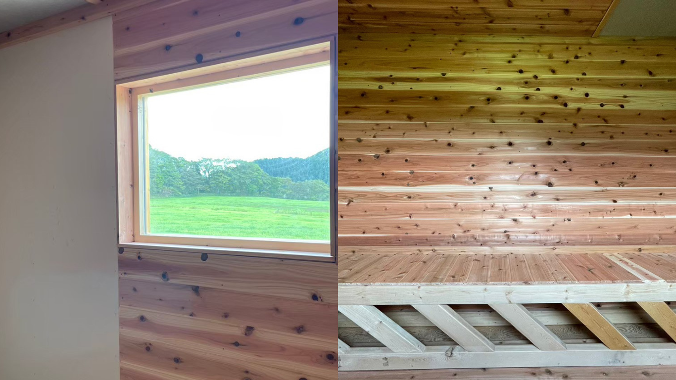 室内は密閉性がしっかりしているので、地元の木材である「道南杉」で良い香りに包まれながら、100℃超えを楽しめます。