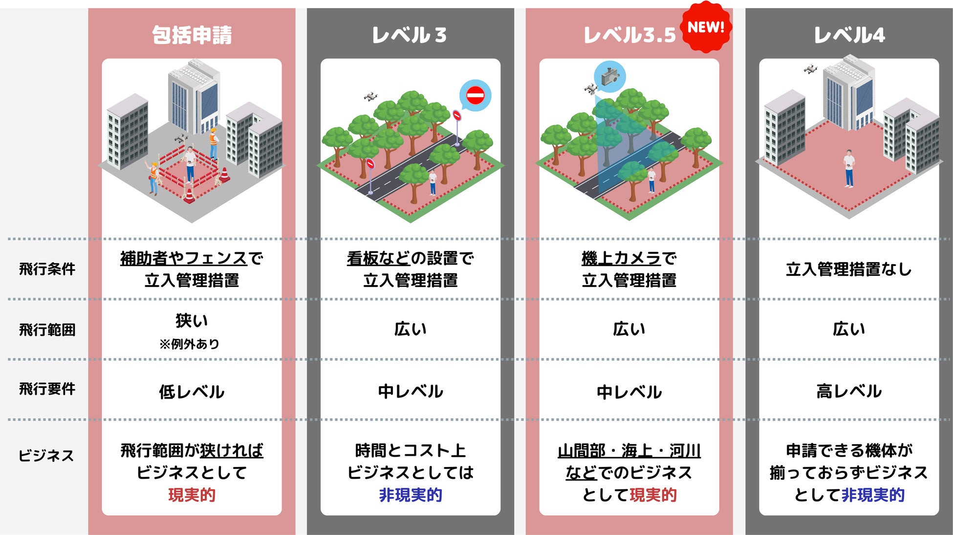 レベル3.5はドローンビジネスが加速するとても素晴らしい制度と思っております。